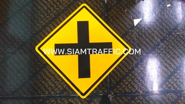 - ป้ายเตือน ต.11 หรือป้ายเตือนสี่แยก ขนาด 60 x 60 ซม. จำนวน 3 แผ่น