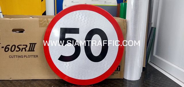 - ป้ายบังคับ บ.32 หรือป้ายจำกัดความเร็ว ขนาด 60 ซม. จำนวน 4 แผ่น