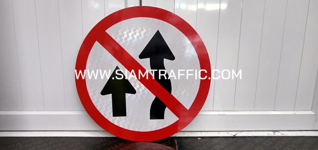 - ป้ายบังคับ บ.4 หรือป้ายห้ามแซง ขนาด 60 ซม. จำนวน 1 แผ่น