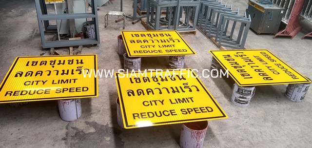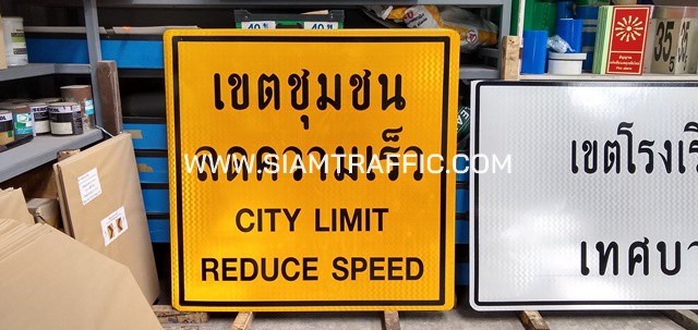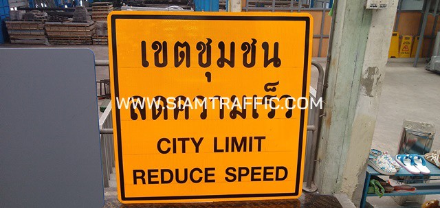 11. ป้ายเตือน ต.77 / ป้ายเขตชุมชน ลดความเร็ว (พร้อมติดเฟรมป้าย 2 นิ้ว x 1 นิ้ว) ขนาด 120 x 120 เซนติเมตร