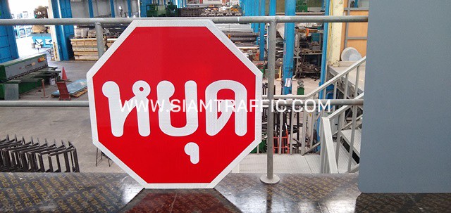 1. ป้ายบังคับ บ.1 หรือป้ายหยุด ขนาด 75 x 75 เซนติเมตร