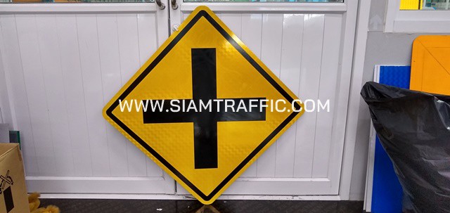 4. ป้ายเตือนทางแยกรูป ทางเอกตัดกัน, ป้ายเตือนสี่แยก ต.11 ขนาด 75 x 75 เซนติเมตร