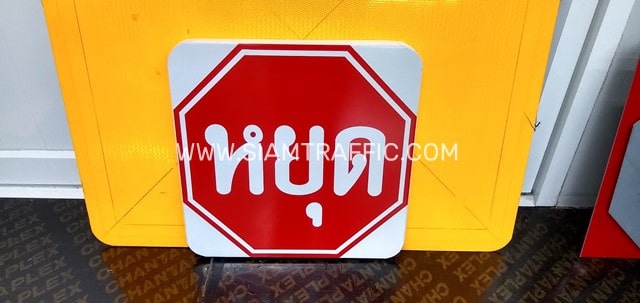 - ป้ายบังคับ บ-1 หรือป้ายหยุด