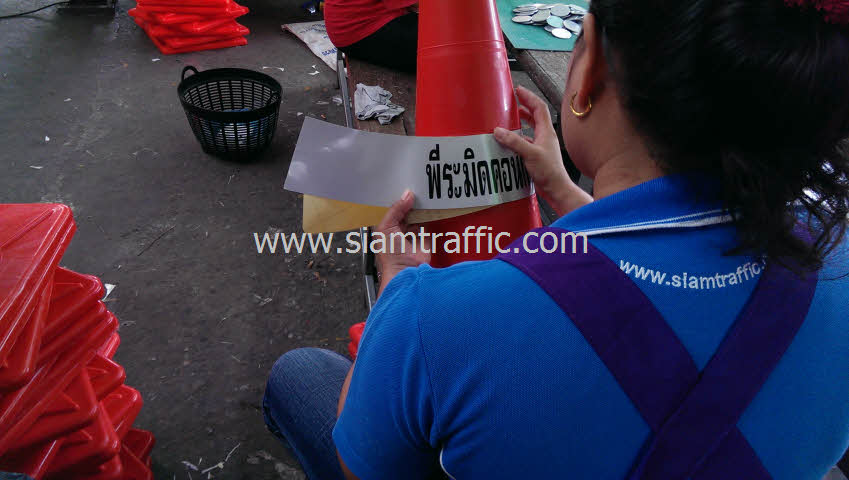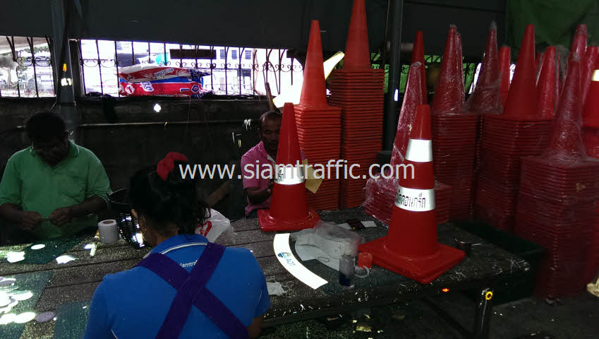 บริษัท สยามทราฟฟิค จำกัด จำหน่ายกรวยจราจรมีหลากหลายรุ่น สามารถคาดแถบสะท้อนแสงสกรีนชื่อหน่วยงานของท่านได้ สอบถามราคากรวยจราจรเพิ่มเติมได้ที่