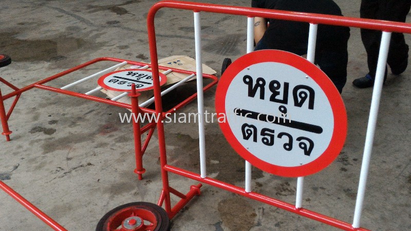 รายละเอียด เหล็กกั้นถนน มีล้อ ขาว-แดง ยาว 1 เมตร พร้อมป้าย “หยุด-ตรวจ”