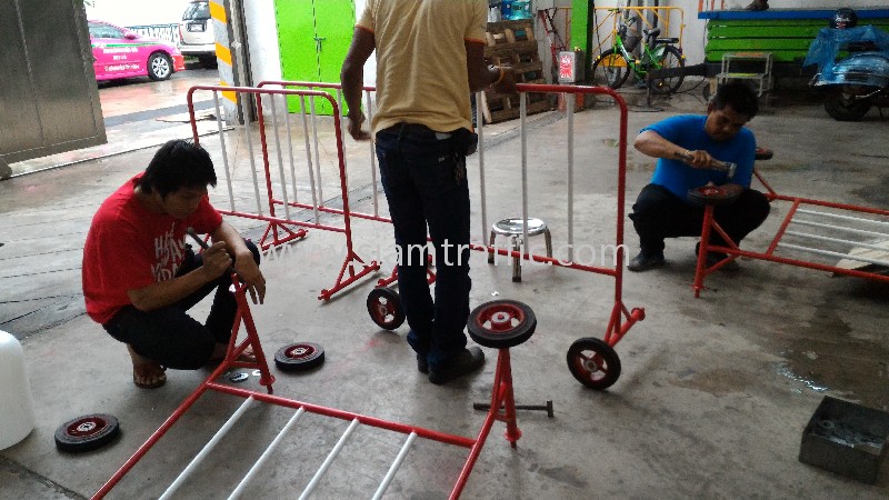 - เหล็กกั้นถนน แบบ B มีล้อ ขาว-แดง ยาว 1 เมตร จำนวน 6 แผง