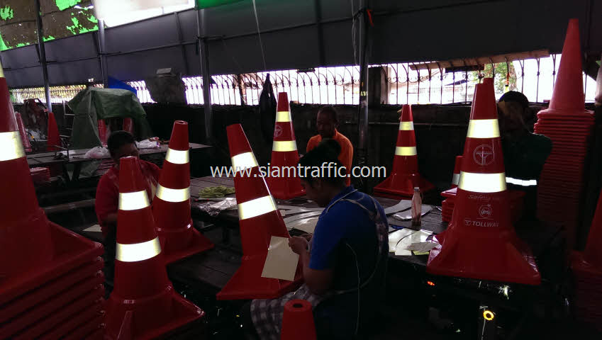 บริษัท สยามทราฟฟิค จำกัดเป็นผู้ผลิตกรวยถนนมีขนาดความสูง 50, 70, 80 และ 100 เซนติเมตร สามารถสกรีนข้อความ หรือโลโก้บนสติ๊กเกอร์สะท้อนแสงได้ตามต้องการ สอบถามราคากรวยถนนได้ที่