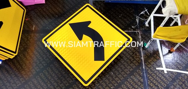 - ป้ายเตือน ต.1 หรือป้ายเตือนทางโค้งซ้าย ขนาด 60 x 60 ซม.