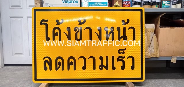 - ป้ายโค้งข้างหน้า ลดความเร็ว