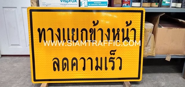 - ป้ายทางแยกข้างหน้า ลดความเร็ว