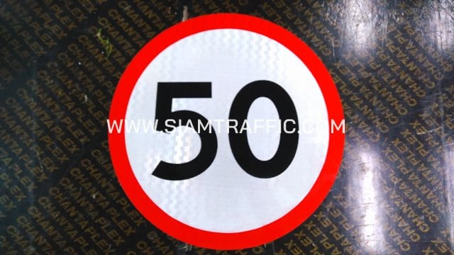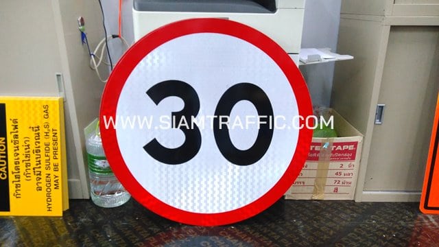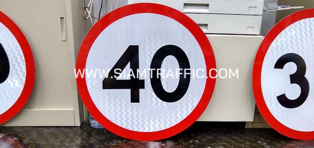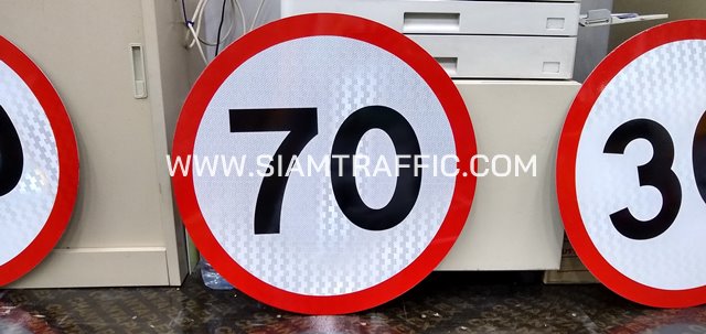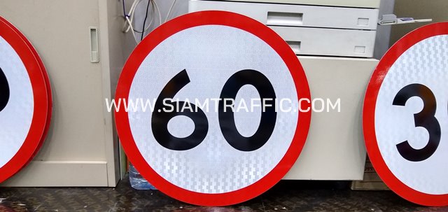 - ป้ายบังคับ บ.54 หรือป้ายจำกัดความเร็ว 30/40/50/60/70 สีน้ำเงิน-ขาว ขนาด 60 ซม. (ป้ายกลม)