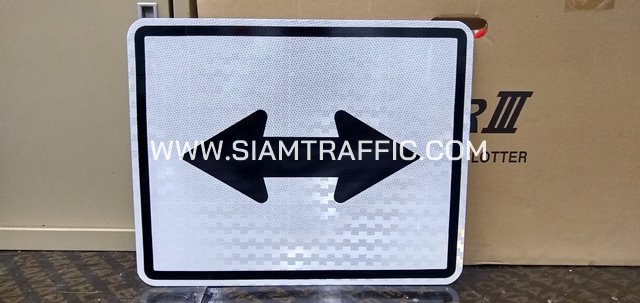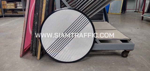 - แผ่นเหล็กอาบสังกะสี 1.2 มม. ติดสติกเกอร์สะท้อนแสง PEG ตามแบบมาตรฐานกรมทางหลวงชนบทปี 2561