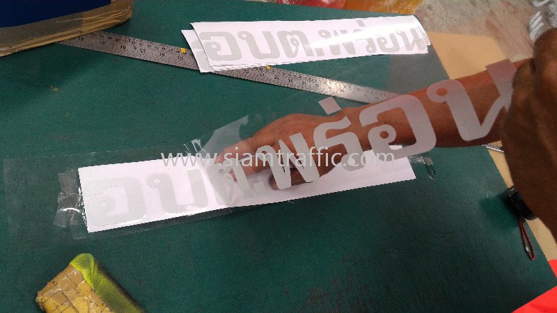 - ติดสติ๊กเกอร์สะท้อนแสง “อบต.พร่อน” สีขาว
