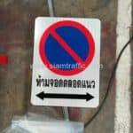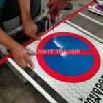 - ป้ายห้ามจอดตลอดแนว ขนาด 45 x 60 เซนติเมตร สำหรับติดหน้าแผงกั้นจราจร จำนวน 6 แผ่น