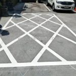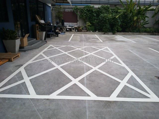 - ตีเส้นจราจร แบ่งช่องจอดรถยนต์ เส้นกว้าง 10 เซนติเมตร จำนวน 8 ช่อง